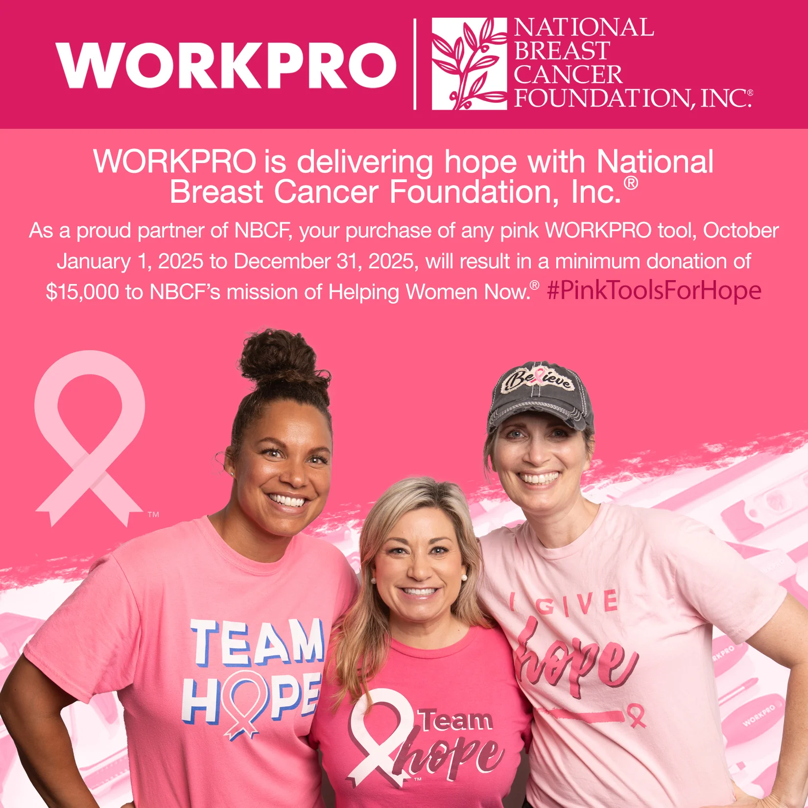 Pink Ribbon: WORKPRO Tools is donating $0.25 from this purchase to National Breast Cancer Foundation, INC.. NBCF is Helping Women Now by providing early detection, education and support services to those affected by breast cancer.